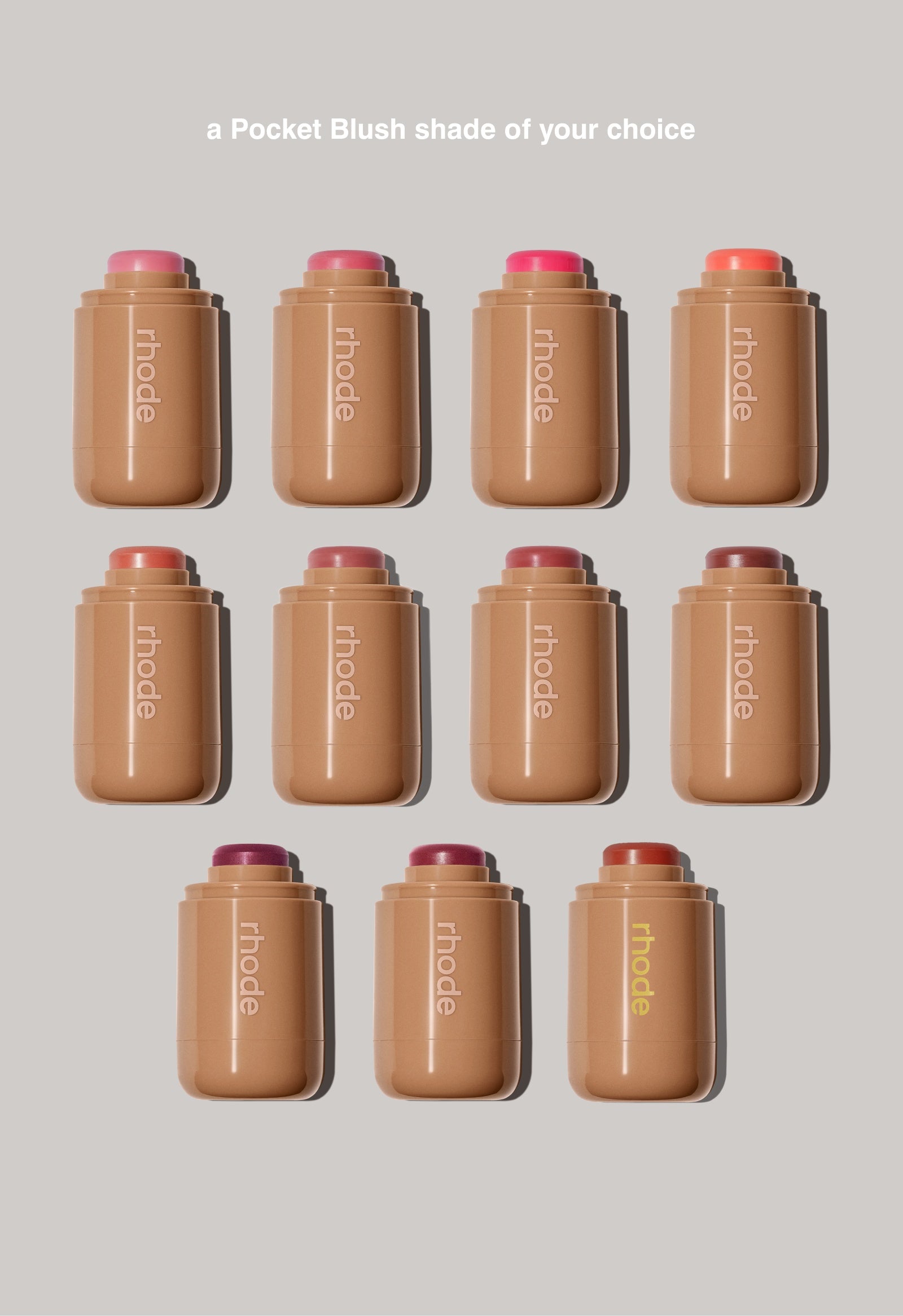 Includes 3 products: little Glazing Milk (65mL / 2.2 fl oz), a Pocket Blush shade of your choice, and little Pineapple Refresh (40mL / 1.35oz)